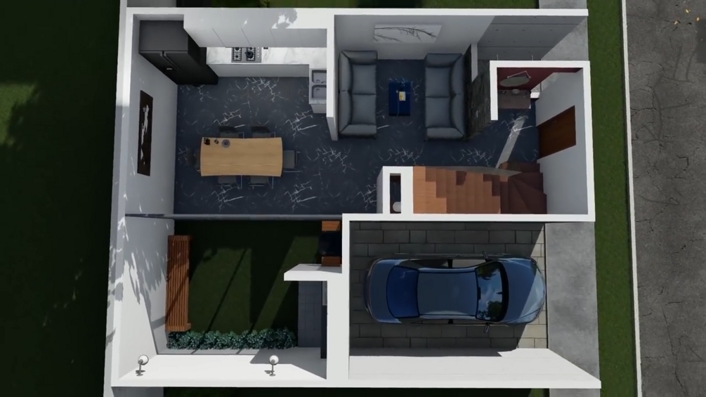 GROUND:Garage-Living room-Dining room-Kitchen-Bathroom-Laundry room.